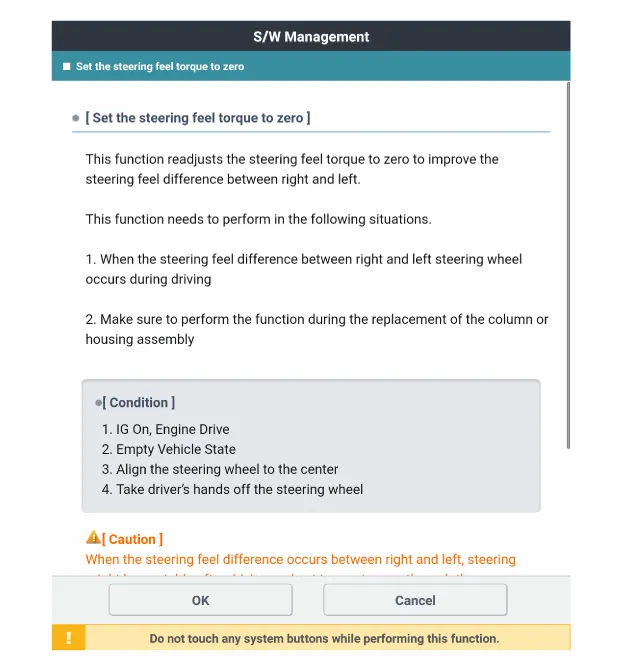 "Lenkgefühldrehmoment auf Null stellen" am KDS-Bildschirm auswählen und OK wählen. |