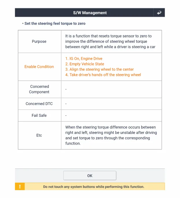 "Lenkgefühldrehmoment auf Null stellen" am KDS-Bildschirm auswählen und OK wählen. |