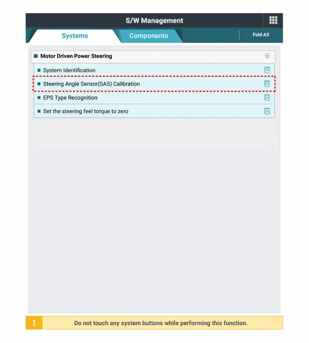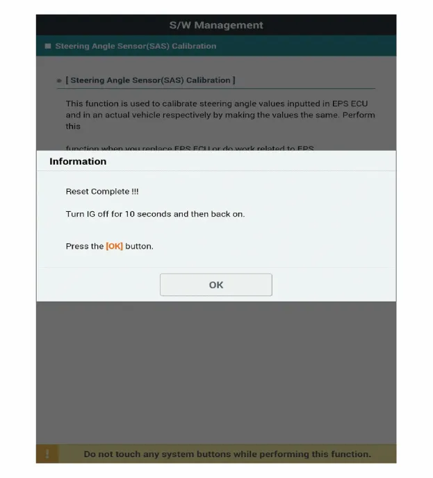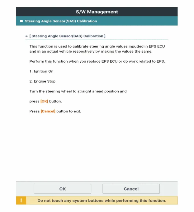 "Kalibrierung des Lenkwinkelsensors (SAS)" am KDS-Bildschirm wählen, dann OK wählen. |