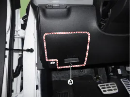 Deckel (A) des Sicherungskastens im Beifahrer-Fußraum abnehmen.