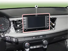 Befestigungsschrauben lösen, dann Audioanlage (A) ausbauen.