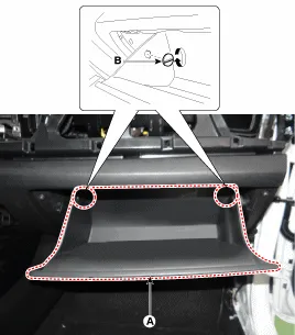 Scharnierstifte (A) ausbauen, dann Handschuhfach (B) abnehmen.