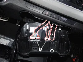 Schrauben lösen, dann untere Armaturenbrettverkleidung (A) abtrennen.