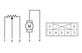 Prüfen, ob der Modus-Stellantrieb die Stellung Defrosten einnimmt, wenn 12 V an Klemme 4 und Masse an Klemme 3 angelegt wird. Sicherstellen, dass der Modus-Stellantrieb in der Entlüftungs-Stellung arbeitet, wenn die Anschlüsse vertauscht werden.