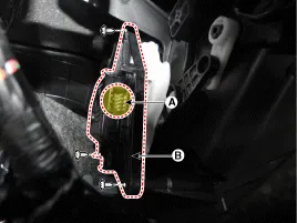 Steckverbinder (A) abklemmen und dann den Modus-Stellantrieb (B) nach dem Lösen der Befestigungsschrauben ausbauen.