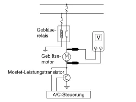 Den Schalter von Hand betätigen und die Spannung des Gebläsemotors messen. |