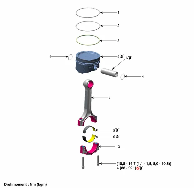 7. Pleuelstange 8. Oberes Pleuellager 9. Unteres Pleuellager 10. Pleuellagerdeckel |