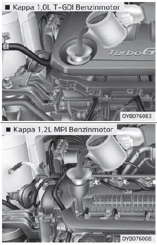 Lassen Sie das Motoröl und den Motorölfilter von einer Fachwerkstatt austauschen. Kia empfiehlt den Besuch eines Kia-Händlers/Servicepartners.