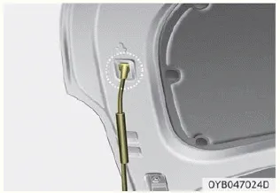 Öffnen Sie die Klappe, nachdem Sie den Motor abgeschaltet und das Fahrzeug auf einer ebenen Fläche geparkt haben. Bringen Sie den Wählhebel in die Parkstufe P bei einem Automatikgetriebe bzw. in die Stellung für den 1. Gang bzw. Rückwärtsgang bei einem Schaltgetriebe und ziehen Sie die Feststellbremse an.