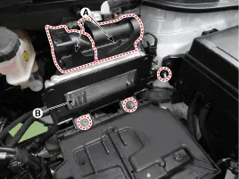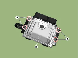 Befestigungsmuttern (A) lösen und ECM (B) aus der Halterung nehmen.