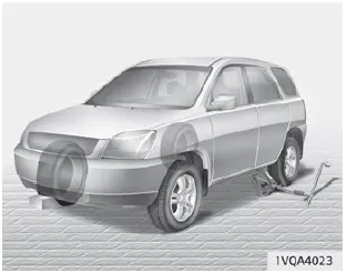 Um das Verletzungsrisiko zu reduzieren, benutzen Sie zum Anheben des Fahrzeugs ausschließlich den mitgelieferten Wagenheber und die vorgegebenen Aufnahmepunkte und heben Sie das Fahrzeug niemals an anderen als den vorgesehenen Stellen an.