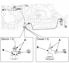 Die Muttern (A) lösen und den Regler (B) ausbauen.[Diesel 1,6]