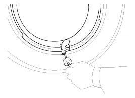 Nach der Montage des unteren Wulstes die Felge so drehen, dass der sich das Ventil an der 5-Uhr-Position in Bezug auf den Kopf der Reifenmontagemaschine befindet. Reifen an der 3-Uhr-Position herunterdrücken und Felge im Uhrzeigersinn drehen, um den oberen Wulst zu montieren.