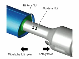 Mittelschalldämpfers wie unten beschrieben abtrennen. - An der vorderen Nut des Schalldämpfers absägen.