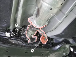Katalysator & mittleren Schalldämpfer (B) abbauen.