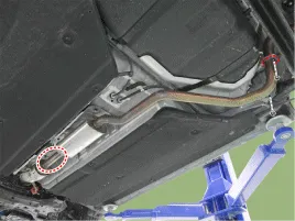 Überprüfen, ob der Klemmbereich des Mittelschalldämpfer beschädigt oder verformt ist. Wenn der Schalldämpfer an der Klemme zu stark korrodiert ist, muss der Mittelschalldämpfer ersetzt werden.
