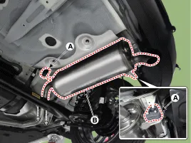 Gummiaufhängung (A) vom Mittelschalldämpfer entfernen. |