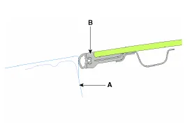 Die Stufenhöhe zwischen Dachblech (A) und Scheibendichtungsprofil (B) prüfen und bei Bedarf einstellen.