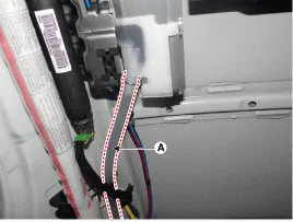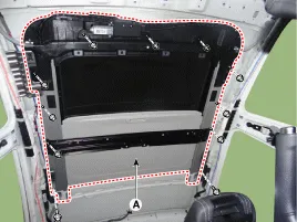Befestigungsschrauben lösen, dann vordere Haltegriffhalterung (A) auf der Beifahrerseite entfernen.