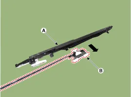 Ablaufleistenverbindung (B) und Führung (A) trennen.
