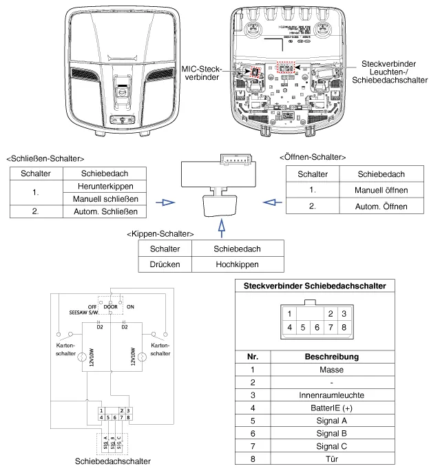 Bauteile und bauteile-Übersicht BAUTEILE-ÜBERSICHT 1. Schiebedach 2. Schiebedachschalter 3. Schiebedachmotor & Steuerung Schematische darstellungen Schaltplan