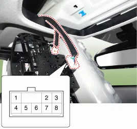 Reparaturverfahren PRÜFUNG 1. Batteriemassekabel abklemmen. 2. Dachverkleidung abnehmen. (Siehe Karosserie - "Dachverkleidung") 3.