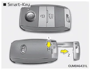 Um den mechanischen Schlüssel zu entfernen, drücken und halten Sie die Freigabetaste und ziehen Sie den mechanischen Schlüssel heraus.