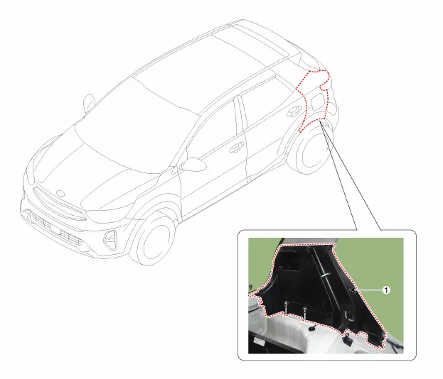 Bauteile und bauteile-Übersicht BAUTEILE-ÜBERSICHT 1. C-Säulenverkleidung Reparaturverfahren AUS- UND EINBAU Handschuhe anziehen, um die Hände zu schützen.