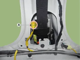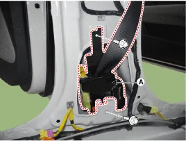 Befestigungsschrauben lösen und Vordersitz-Gurtaufroller (A) ausbauen.