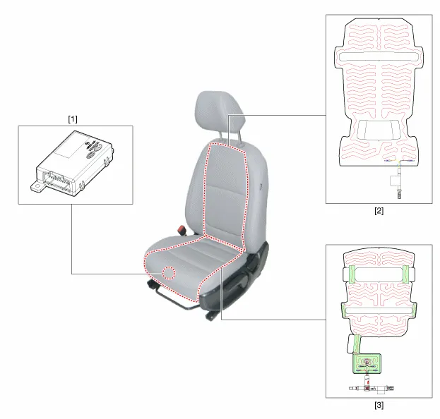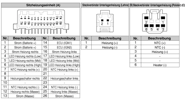 | 1. Sitzheizungseinheit (nur Beifahrersitz)