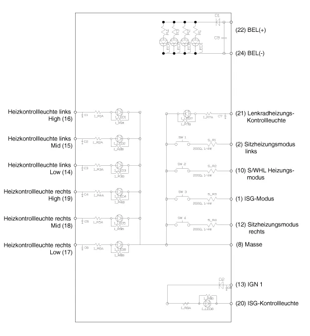 Bauteile und bauteile-Übersicht BAUTEILE-ÜBERSICHT 1. Sitzheizungseinheit (nur Beifahrersitz) 2. Vordersitzlehnenheizung 3.
