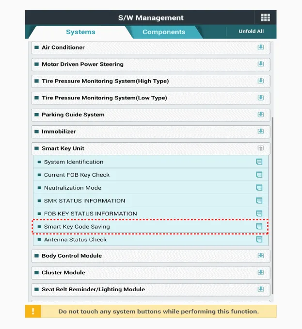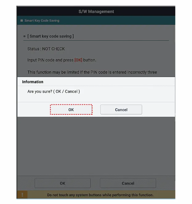 Erst das Fahrzeugmodell und danach die Funktion 'Speichern des Smart-Key-Codes' wählen.