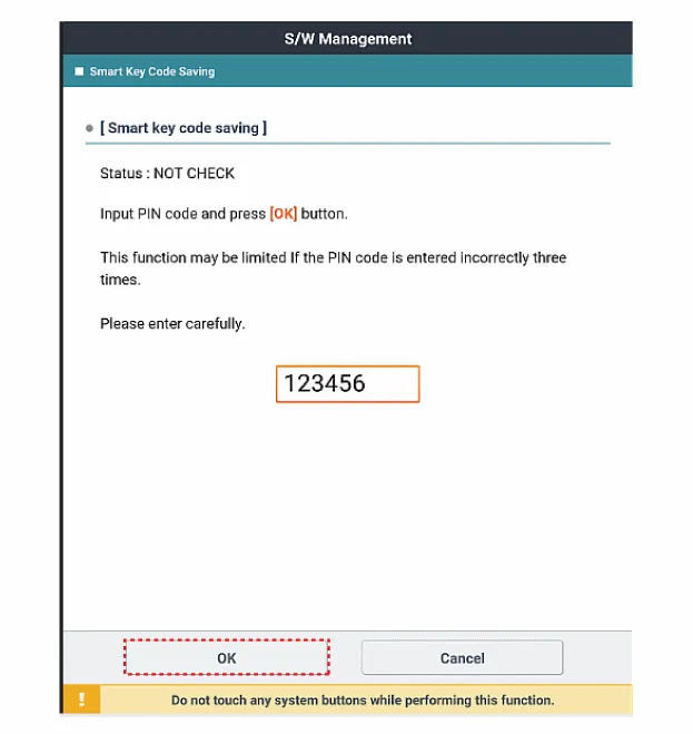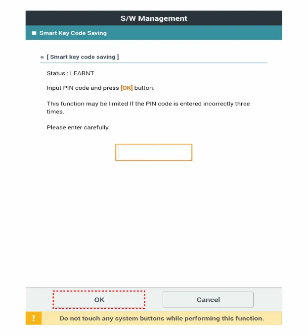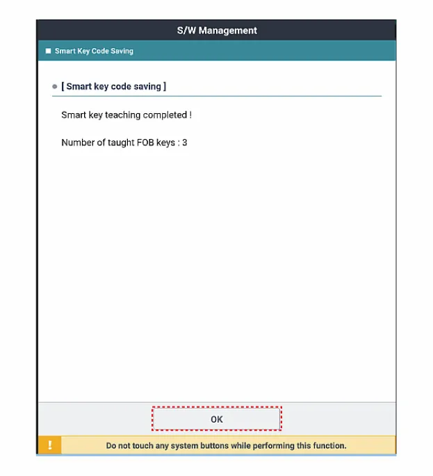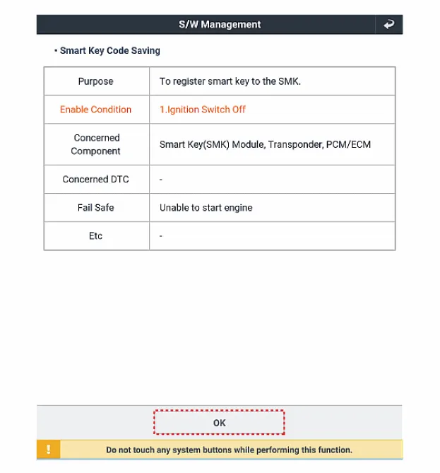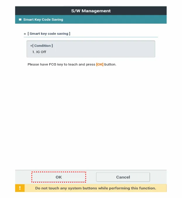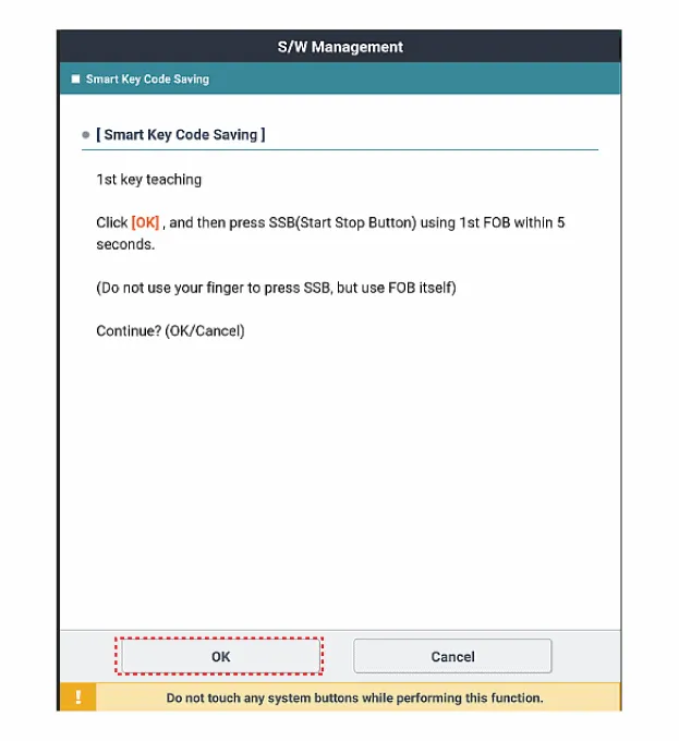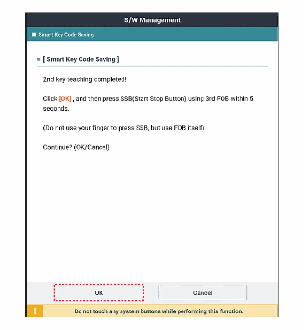 Nach dem Betätigen der Taste "OK" innerhalb von 5 s den SSB mit dem Smart Key drücken.