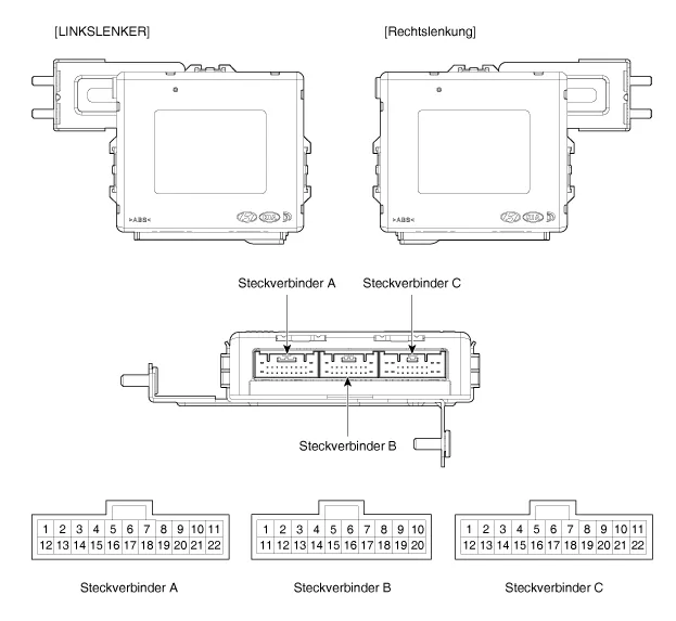 Steckverbinder (A) abziehen, dann Smartkey-Einheit (B) ausbauen.