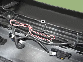 Befestigungsschrauben lösen und Steckverbinder (B) abziehen, dann hintere Stoßfängerantenne (A) entfernen.