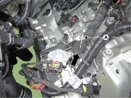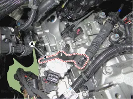 Zunächst das Spiel durch Drücken des Schaltzugs in Pfeilrichtung beseitigen und dann die Mutter (A) auf das vorgegebene Anzugsdrehmoment anziehen.