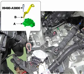 Spezialwerkzeug (09480-A3800) aus der Einstellbohrung entfernen. |