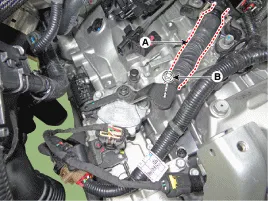 Die Bohrung (B) im manuellen Steuerhebel auf die Bohrung (A) der Position "N" des Sperrschalters ausrichten, dann den Sperrschalter-Führungsstift (09480-A3800) einsetzen.