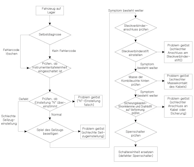 Prüfen ob die Bereichseinstellung "N" korrekt ist. (Siehe Sperrschalter - "Einbau") |