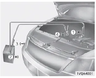 Klemmen Sie die Klammern der Starthilfekabel in der numerischen Reihenfolge an und nehmen Sie die Kabelklammern in der umgekehrten Reihenfolge ab.