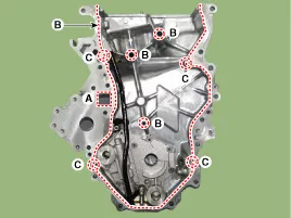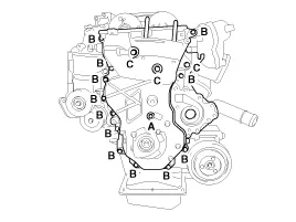 Reparaturverfahren AUS- UND EINBAU 1. Kurbelwellendämpferriemenscheibe abbauen. (Siehe Antriebsriemensystem - "Kurbelwellendämpferriemenscheibe") 2.