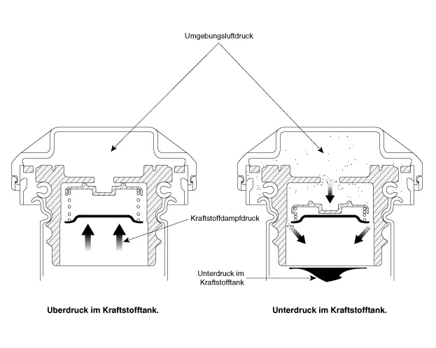 Ein Knarrenmechanismus am Tankdeckel verhindert, dass der Tankdeckel fehlerhaft aufgeschraubt wird und hierdurch der Tankstutzen komplett verschlossen wird. Sobald beim Aufschrauben des Tankdeckels die Tankdeckeldichtung am Tankstutzen anliegt, erzeugt der Mechanismus laute Klickgeräusche, die den ordnungsgemäßen Sitz des Tankdeckels anzeigen.