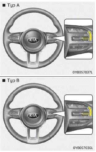 1. Drücken Sie die Taste /CRUISE/ am Lenkrad, um das System einzuschalten. Die Tempomat-Kontrollleuchte leuchtet auf. 2. Beschleunigen Sie bis auf die gewünschte Geschwindigkeit, die über 30 km/h liegen muss.