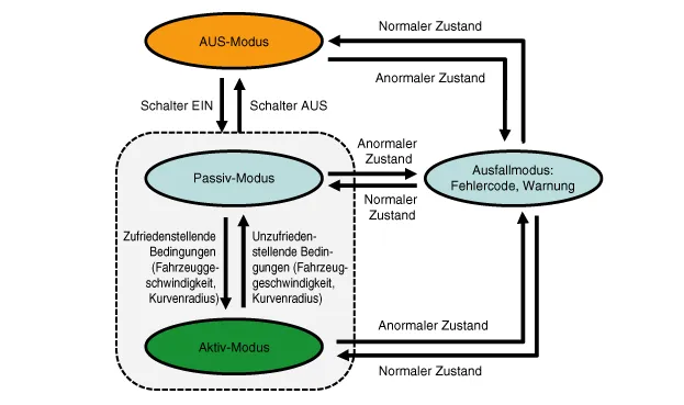 Wenn der Betrieb von BCW und LCA in irgendeinem Modus fehlschlägt, dann wird der Notlaufmodus eingeschaltet. |
