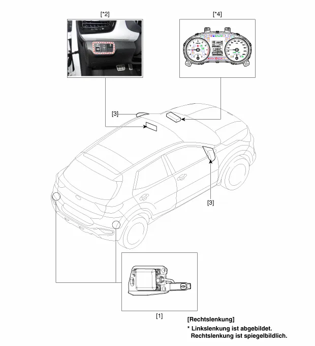 Wenn der Motor gestartet wird, während der Schalter auf EIN steht, dann wird der Passivmodus eingeschaltet. ※ Wenn die Zündung eingeschaltet ist, dann befindet sich der Schalter im Anfangszustand: Die letzte Position wird beibehalten.