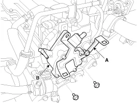 Den Kabelhalter (A) entfernen und dann die Unterdruckpumpe (B) ausbauen.