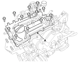 Ventildeckel (A) mit Dichtungen ausbauen.