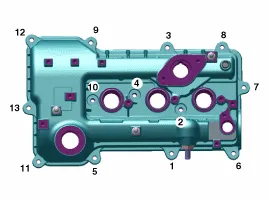 Zylinderkopfdeckelschrauben wie folgt in zwei Schritten anziehen.