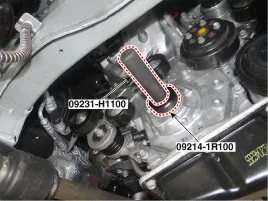 Neue vordere Öldichtung mit Spezialwerkzeug (09214-1R100, 09231-H1100) anbringen und Motoröl auf die Kante der neuen Öldichtung auftragen.
