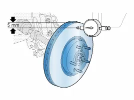 Wenn der Taumelschlag durch die Veränderung der Position der Bremsscheibe nicht korrigiert werden kann, Bremsscheibe ersetzen. |